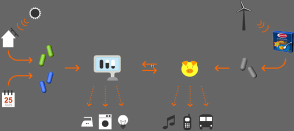 The project's vision is to re-design the way we produce and use energy. In the Platform, energy - produced both on a large scale and locally - spreads over a peer to peer network, like information. It travels over the grid along bi-univocal paths so that it can be transferred and exchanged with goods and services or simply consumed. This implies that energy is visualized on different levels.